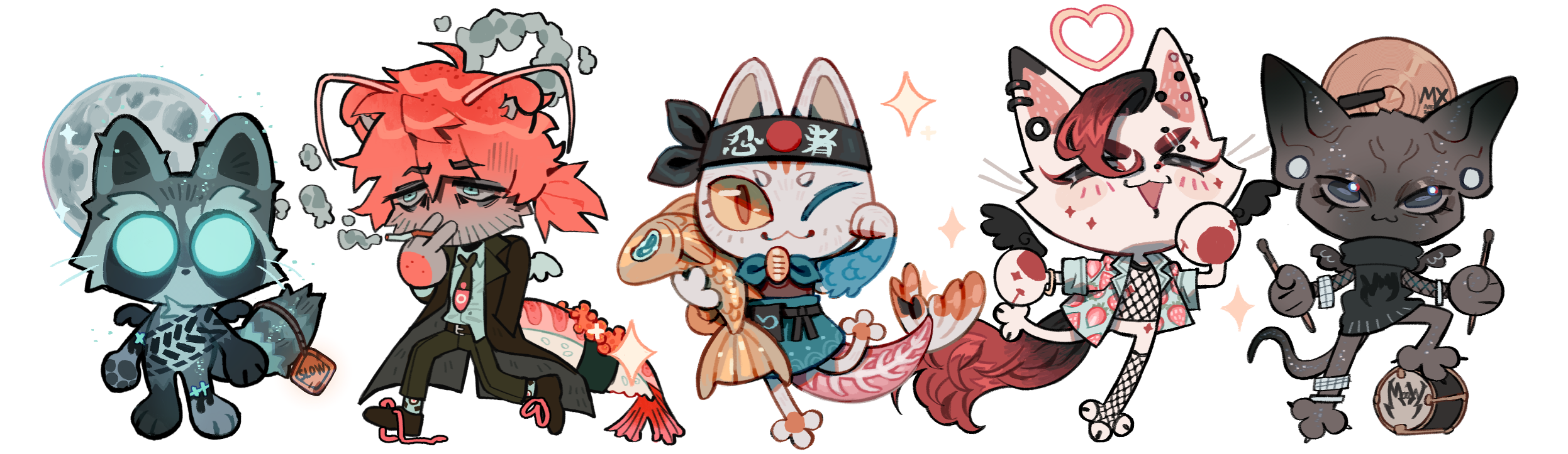 Hi! I'm Eqq! I'm a decently known designer who loves putting personality into my work! I happily lean towards fantastical creatures and adore the world of Cupid Cats! As a bonus, if you ever need someone for splash art... 📞☎Below are designs I've made unrelated to the species! I hope you enjoy my design work! Thank you for the opportunity!